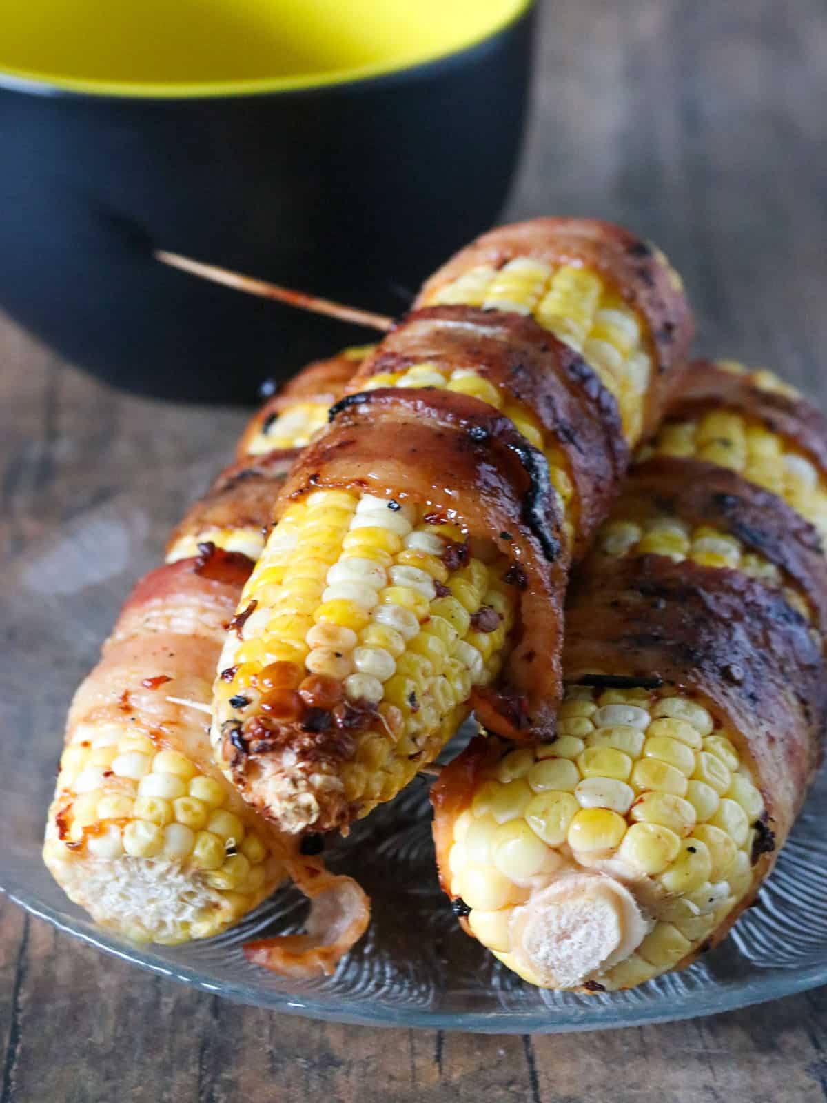 - These grilled corn on the cob are best served hot and fresh, with the bacon still at its peak crispiness. Enjoy them as a side dish with other delicious grilled items like these Chinese-style ribs for an al-fresco meal or as party food, along with honey-soy chicken wings.