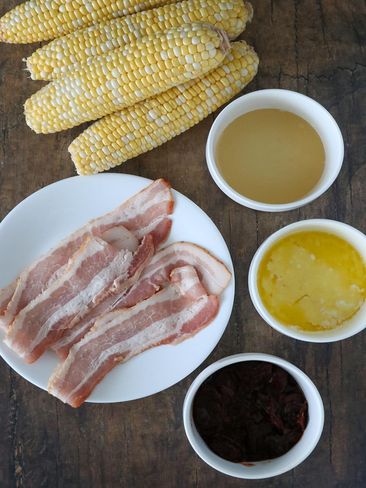 - Bacon– thin cut works best as they can stretch easily, wrap the bacon better, and brown more quickly. If using regular or thick-cut, you can pre-cook them before wrapping the corn.