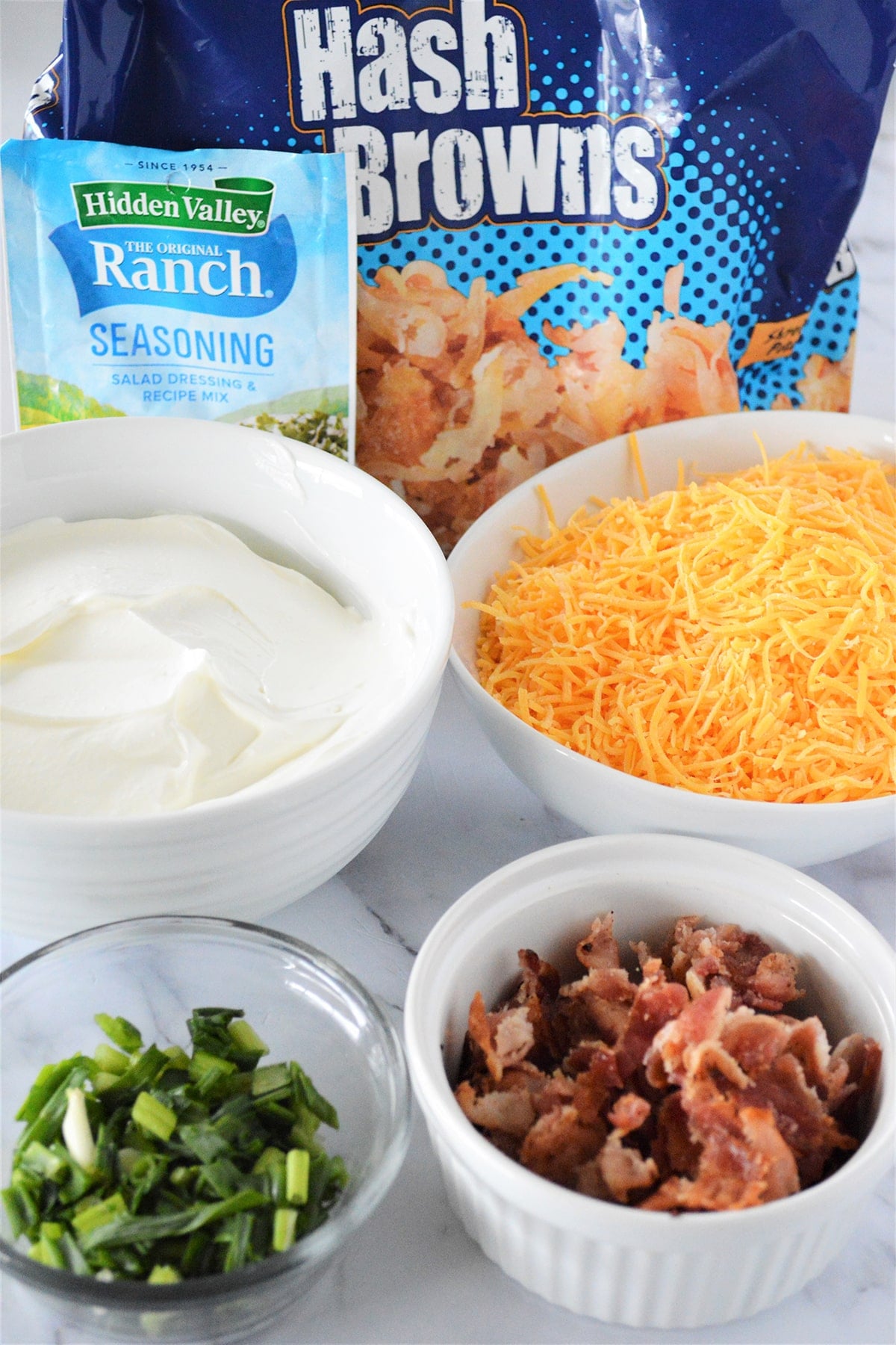 Other than crisping fresh bacon to crumble and adding chopped green onions for a splash of color, I didn’t deviate far from the original recipe. As I’ve tried sour cream, ranch dip mix, and cheese in these cheddar ranch potatoes before, I was sure the combo would work beautifully, and beautifully it did work!