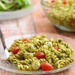 Pesto Pasta Salad with al dente pasta, bocconcini, and juicy cherry tomatoes tossed in a rich pesto sauce. This pasta salad is a satisfying delicious lunch that's sure to please the crowd!
